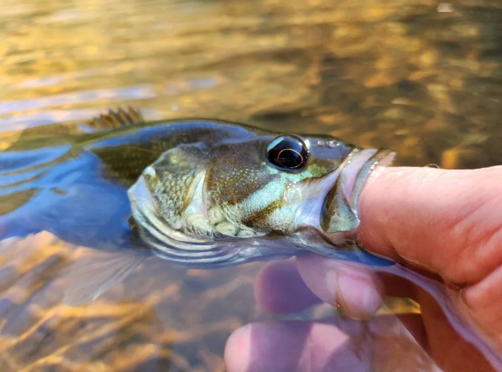 Rockarts likes to mix it up between poppers, nymphs, and small streamers—especially during these shoulder months when the water is low and clear and the bass are shifting from summer habits to fall feeding. “Something about two or three inches long—jerk flies, deer hair flies—stuff you can pop real quick,” he said. Right now, he’s keying in on baitfish patterns because “there’s a lot of shad, and bass are chasing that same size.”